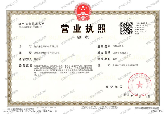 鲜美来食品股份有限公司(以下简称“鲜美来”)是一家专注为全球餐饮专业人士提供品质高端、质量安全、价格实惠的海鲜水产服务公司。
